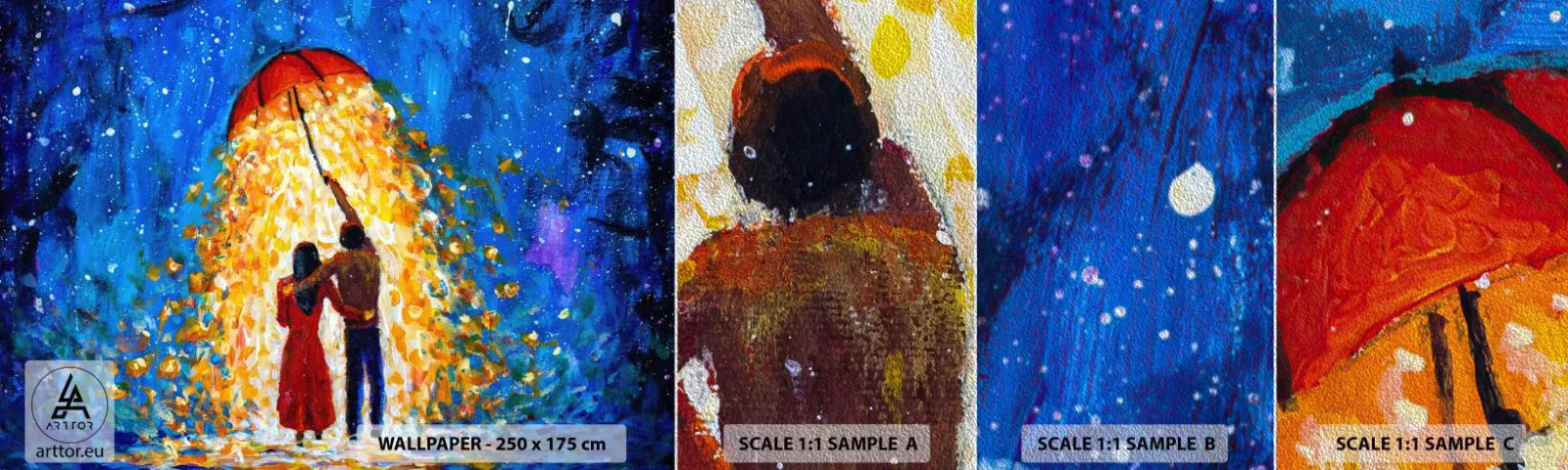 Mostră tapet Premium Sand - Magia unei seri ploioase? - Romantic, Cuplu, Dragoste - 100x30 cm
