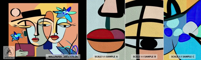 Mostră tapet Premium Sand - Întâlnire cu Picasso - Chipurile, Modern, Cubism - 100x30 cm
