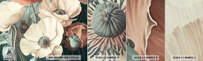 Mostră tapet Premium Sand - Șoapta macilor - Flori, Plante, Pastel - 100x30 cm