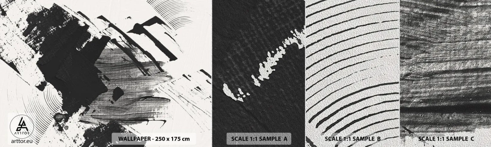 Mostră tapet Premium Sand - Abstracție - expresie de negru - Bucată, Modern, alb-negru - 100x30 cm