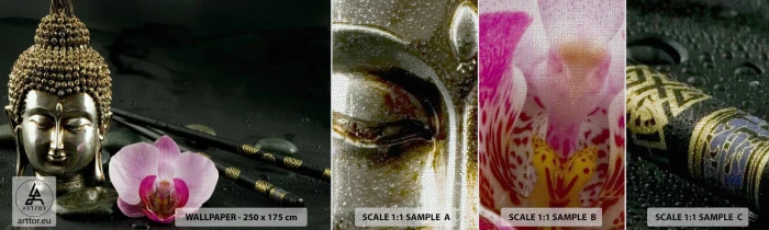 Mostră tapet Premium Canvas - Armonie între înțelepciune și frumusețe - Buddha, Religie, credinta - 100x30 cm