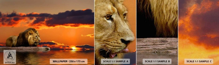 Mostră tapet Premium Canvas - Regele naturii - Leu, Apus de soare, Animale - 100x30 cm