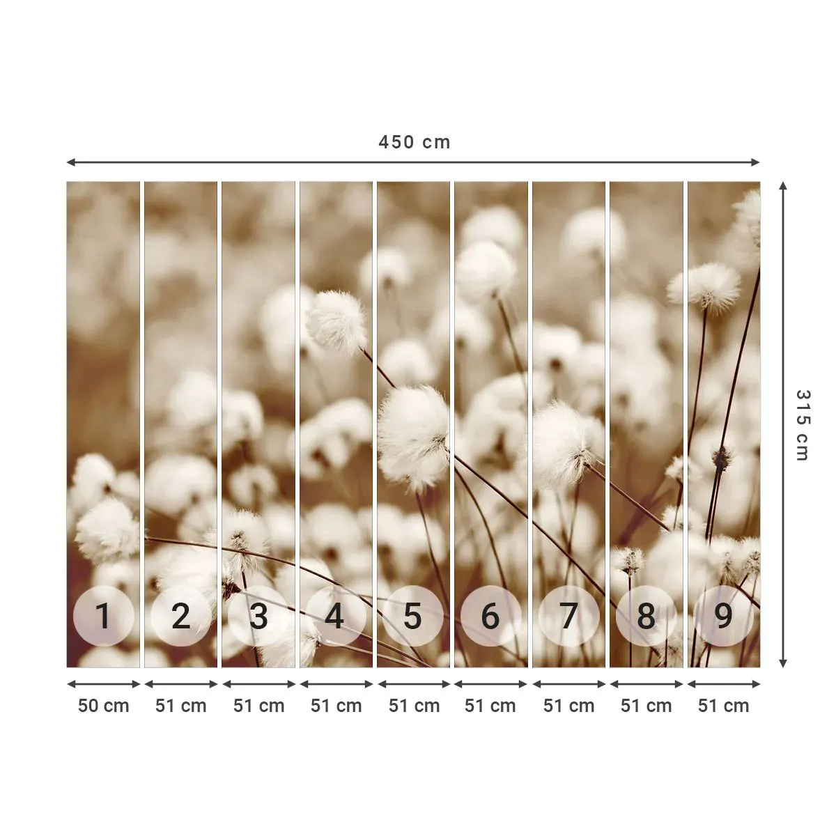 Tapet Autoadeziv Deluxe Sticker - Câmp pufos - Floare de bumbac, Floare, Crenguta de bumbac - 450x315 cm