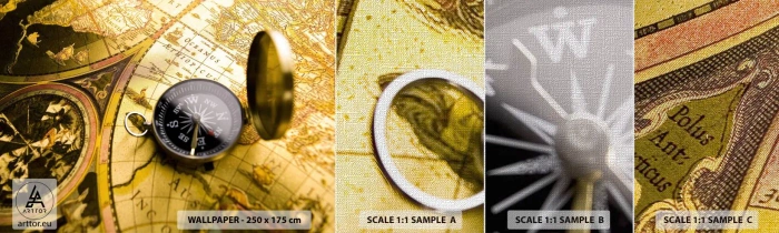 Mostră tapet Premium Canvas - Sau poate până la capătul lumii? - Călătorii, Hărțile lumii, Busolă - 100x30 cm