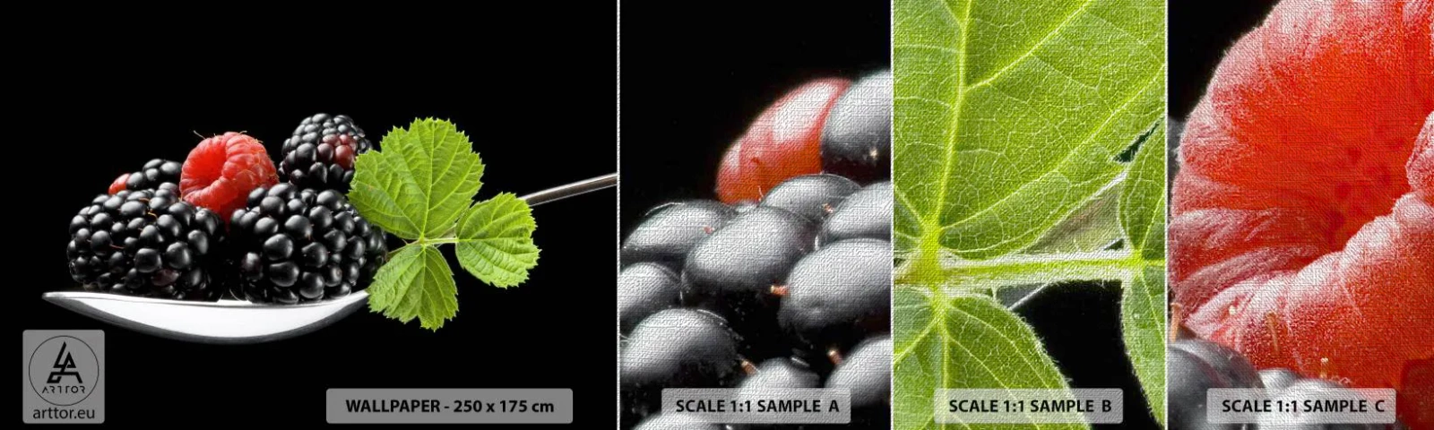 Mostră tapet Premium Canvas - Gustul prospețimii - Fructe, mure, Zmeură - 100x30 cm