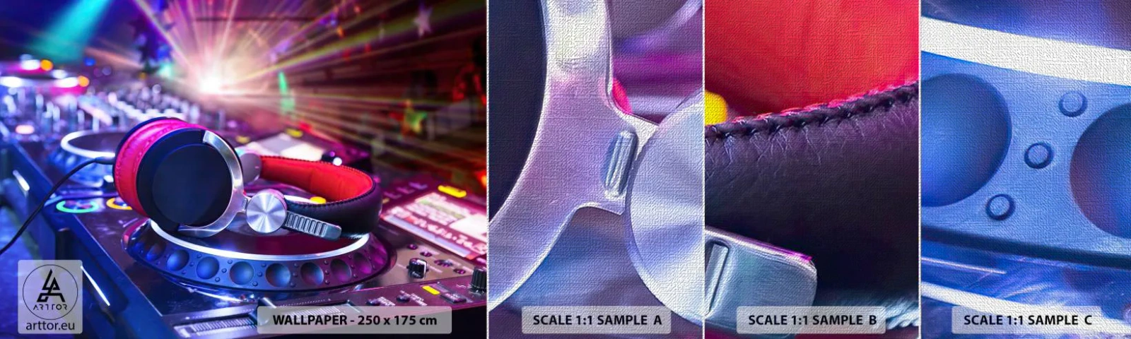 Mostră tapet Premium Canvas - Imediat începe distracția - Muzică, Studio de muzică, Căști - 100x30 cm