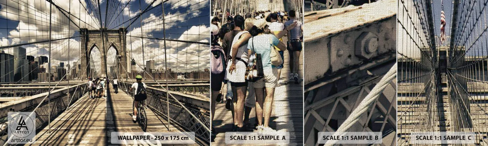 Mostră tapet Premium Canvas - Chiar în inima orașului - Podul Brooklyn, New York, Oraș - 100x30 cm