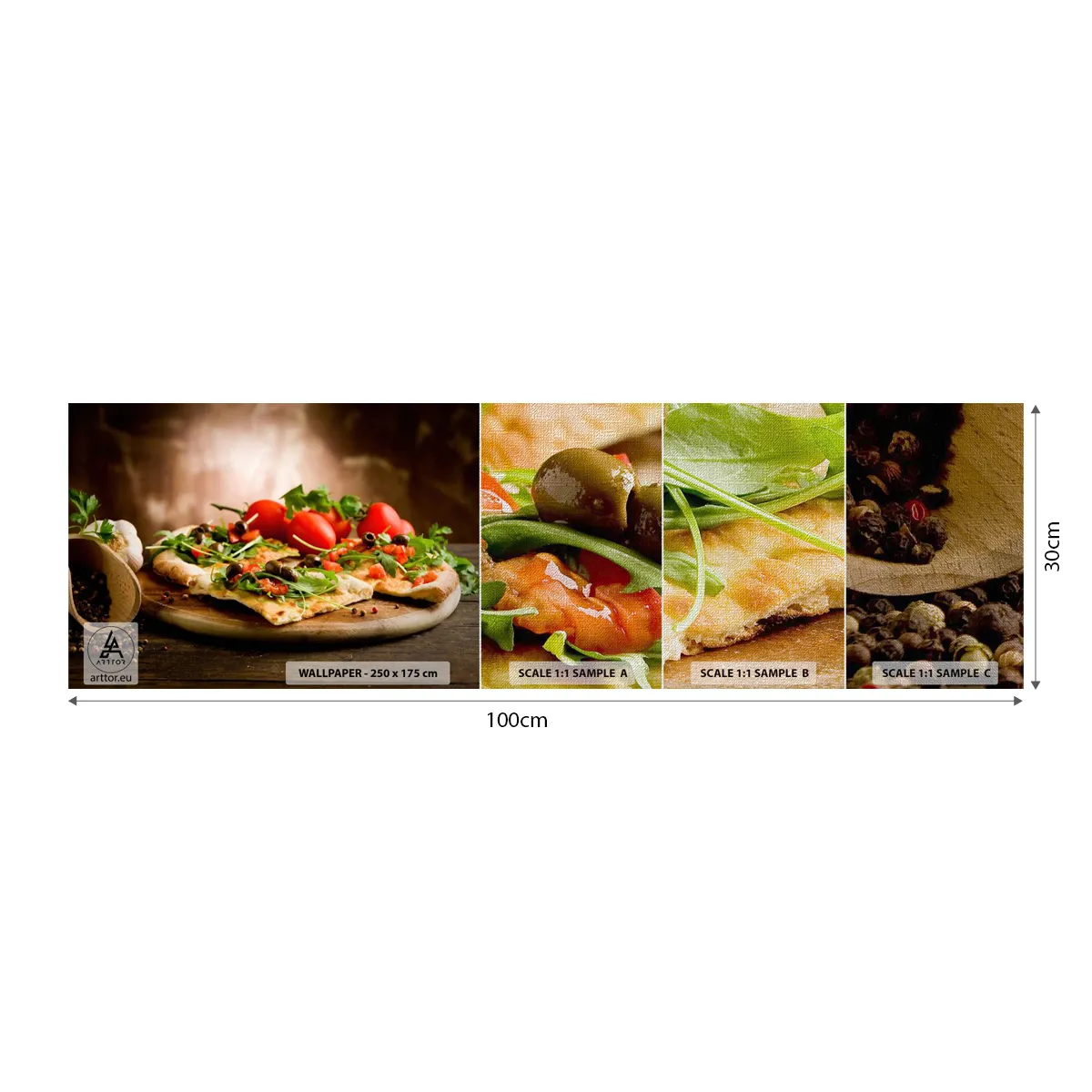 Mostră tapet Premium Canvas - Direct din cuptor și din grădină - Gastronomie, Pizza, Italia - 100x30 cm