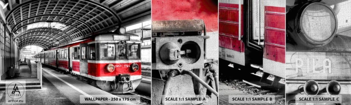 Mostră tapet Premium Canvas - Poate este o călătorie de o viață? - Tren de pasageri, Gară, Platformă - 100x30 cm