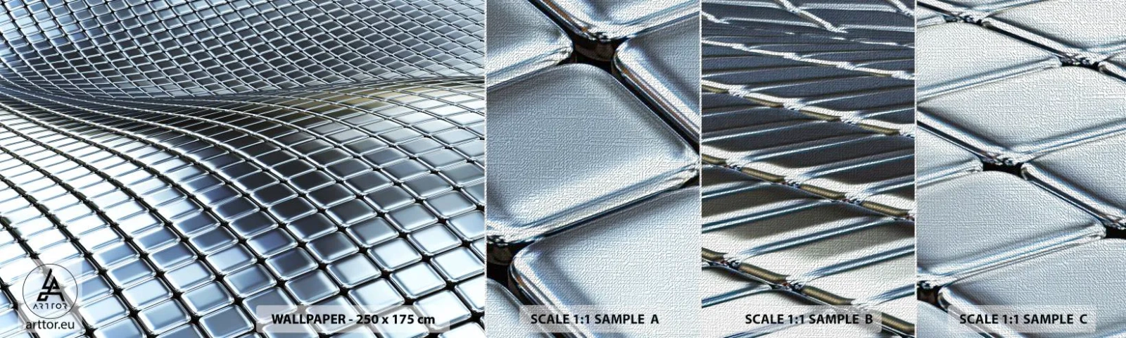 Mostră tapet Premium Canvas - Val metalic argintiu - Abstracția, Grafică, Bucată - 100x30 cm