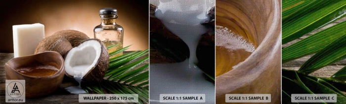 Mostră tapet Premium Canvas - Sănătate din insulele tropicale - Nucă de cocos, spa, Ulei de cocos - 100x30 cm