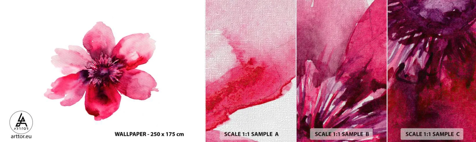 Mostră tapet Premium Canvas - Sărut parfumat de carmin - Floare, Acuarele, Grafică - 100x30 cm