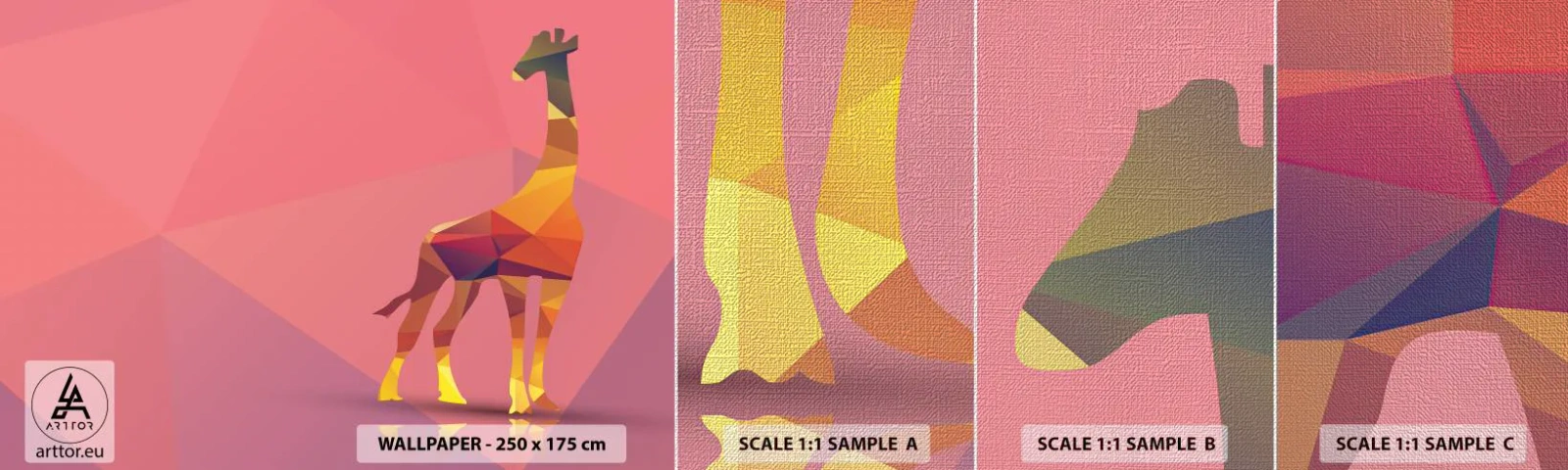 Mostră tapet Premium Canvas - În culorile savanei - Animale, Girafă, Figura geometrică - 100x30 cm