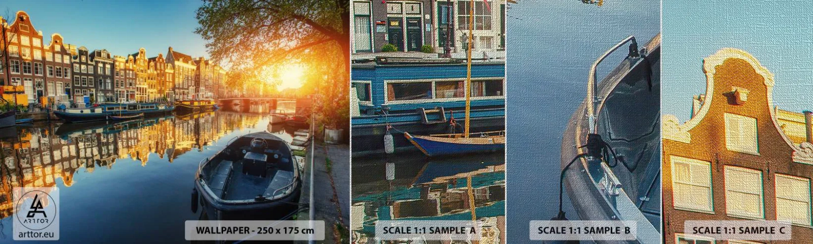 Mostră tapet Premium Canvas - Dimineața în Amsterdam - Oraș, Amsterdam, Arhitectură - 100x30 cm