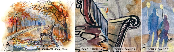 Mostră tapet Premium Canvas - Pășim împreună în toamnă - Peisaj, Parc, Toamnă - 100x30 cm