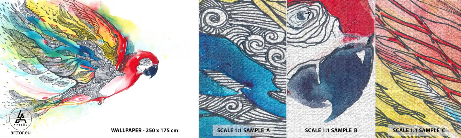 Mostră tapet Premium Canvas - Trăiește în culori - Pasăre, Papagal, Pene colorate - 100x30 cm