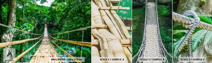 Mostră tapet Premium Canvas - Pod de maimuțe peste verdeață - Peisaj, Junglă, Filipine - 100x30 cm