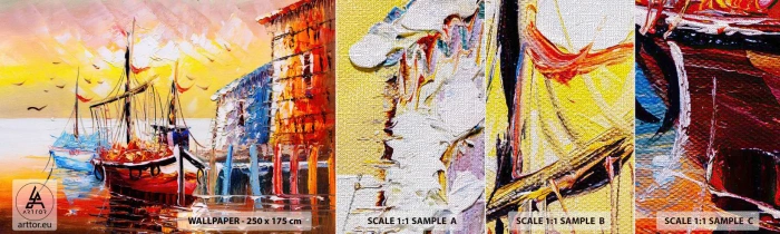 Mostră tapet Premium Canvas - Întoarcere fericită - Peisaj, Portul Pescarilor, Bărci - 100x30 cm