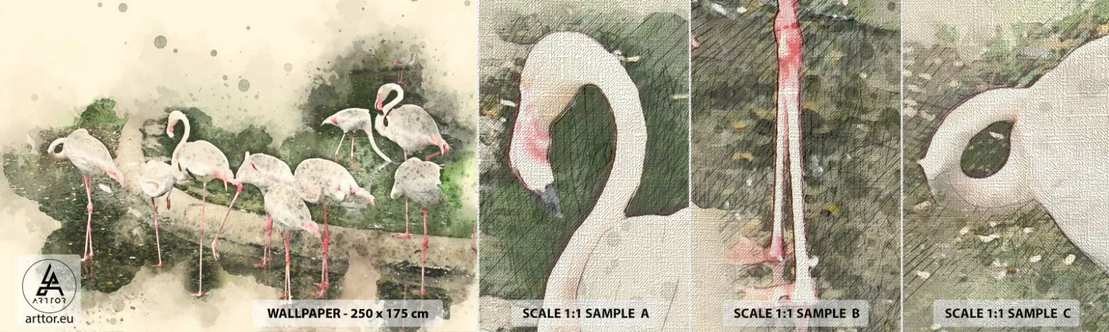 Mostră tapet Premium Canvas - Un vis exotic - Păsări, Flamingos, Natură - 100x30 cm