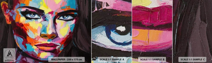 Mostră tapet Premium Canvas - Un suflet plin de culoare - Portretul unei femei, Față, Bucată - 100x30 cm