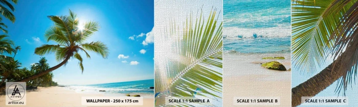 Mostră tapet Premium Canvas - Nu arăta nimănui - Peisaj, plajă, Palmier de nuca de cocos - 100x30 cm