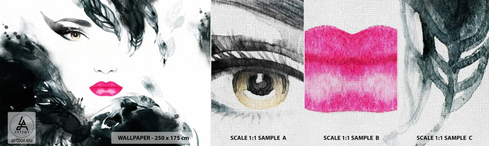 Mostră tapet Premium Canvas - Atenție! Femme fatale - Abstracția, Chipul de femeie, Portretul unei femei - 100x30 cm