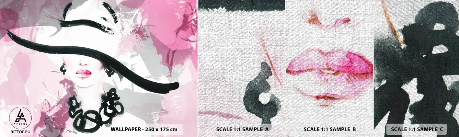 Mostră tapet Premium Canvas - Studiu unei dame în negru și roz - Femeie, Chipul de femeie, Abstracția - 100x30 cm
