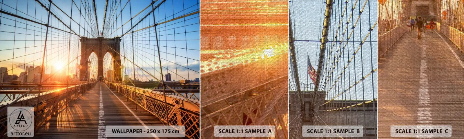 Mostră tapet Premium Canvas - Pe podul de aur - New York, Podul Brooklyn, Arhitectură - 100x30 cm