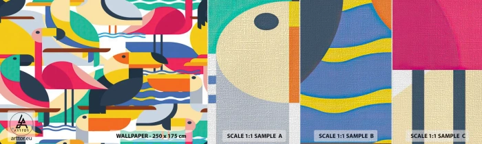 Mostră tapet Premium Canvas - Cheful păsărilor - Abstracția, Pelican, Bucată - 100x30 cm
