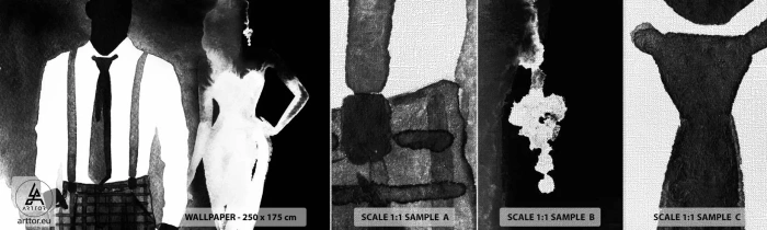 Mostră tapet Premium Canvas - Într-o atmosferă noir - Abstracția, Femeie și Bărbat, Modă - 100x30 cm