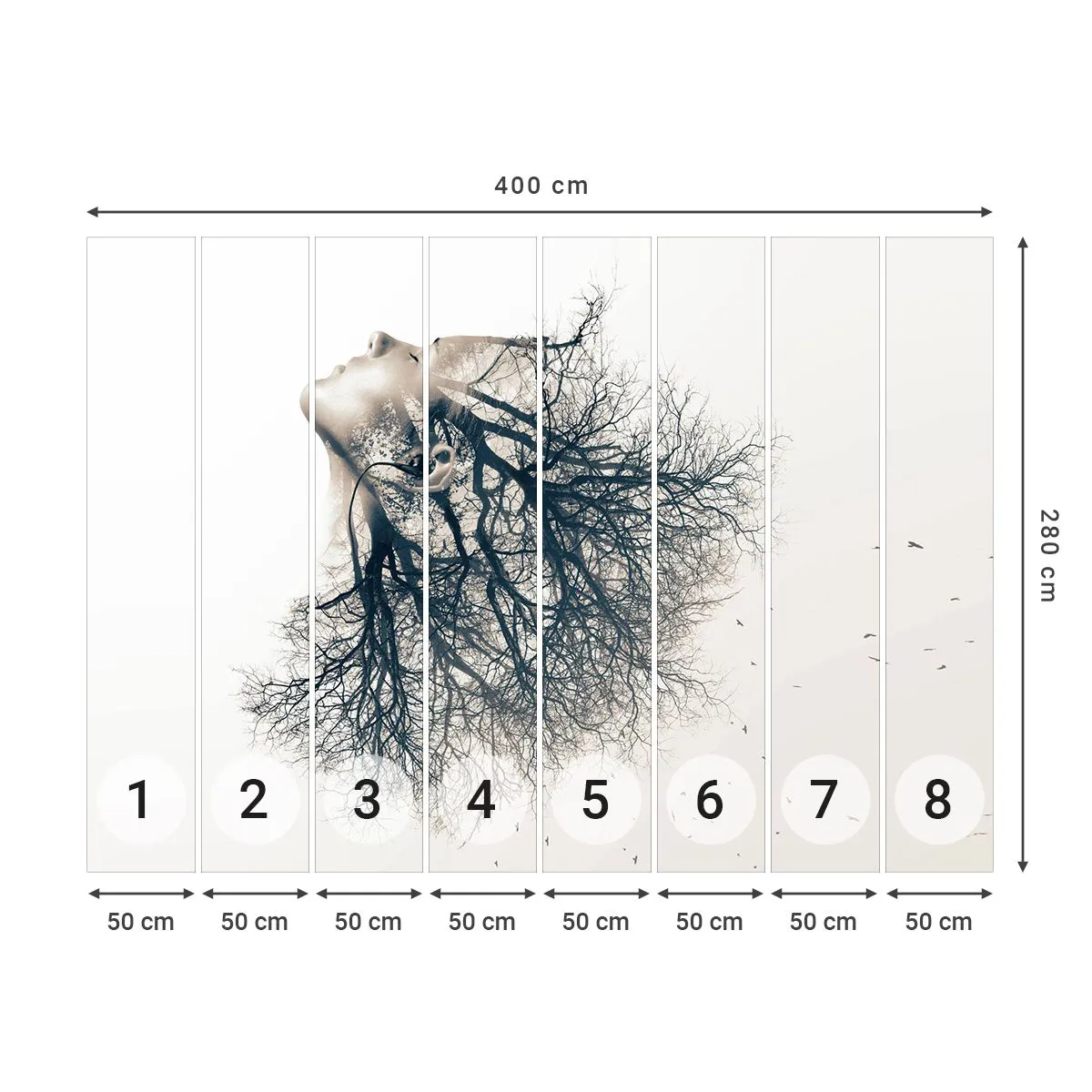 Tapet Standard Eco - Ascultând șoapta copacului - Abstracția, Chipul de femeie, Copac - 400x280 cm