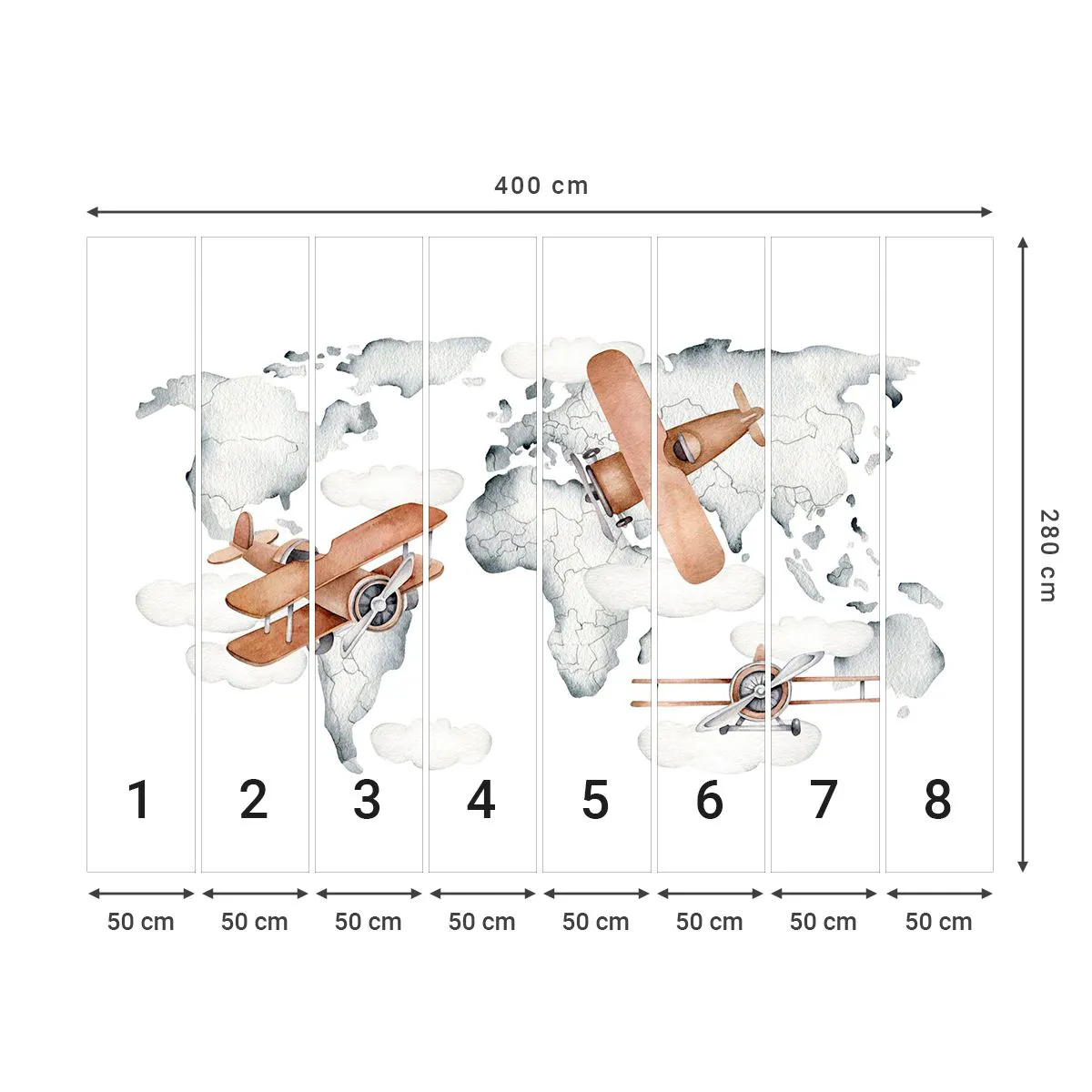 Tapet Standard Eco - În spirit de pionierat - Harta lumii, Avioane, Pentru copii - 400x280 cm