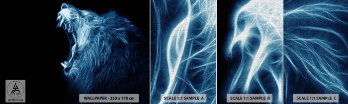 Mostră tapet Premium Canvas - Mânia înflăcărată a regelui - Abstracția, Leu, Animale - 100x30 cm
