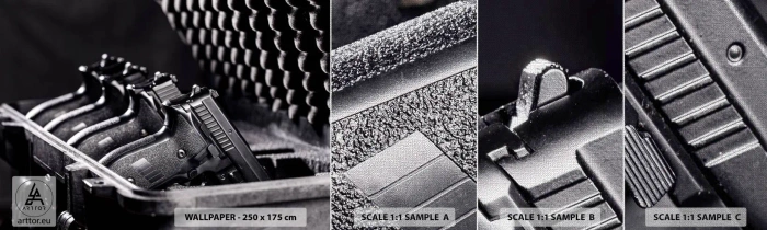 Mostră tapet Premium Canvas - Sport masculin - Militar, Armă, Pistolă - 100x30 cm
