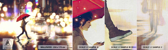 Mostră tapet Premium Canvas - Și totuși este însorită - Oraș, Plimbare in ploaie, Umbrelă - 100x30 cm