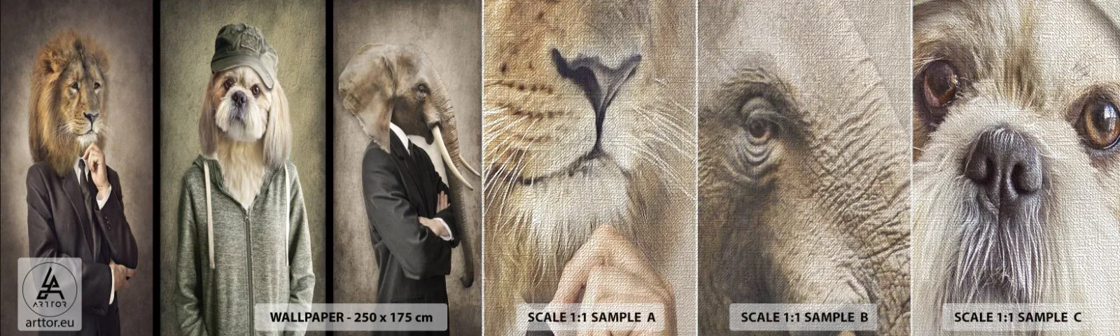 Mostră tapet Premium Canvas - Be cool - Abstracția, Leu, Câine - 100x30 cm