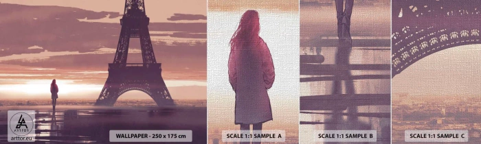 Mostră tapet Premium Canvas - Doar ele două - Oraș, turnul Eiffel, Paris - 100x30 cm