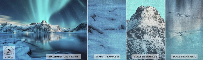 Mostră tapet Premium Canvas - Noaptea de lumină - Auroră boreală, Norvegia, Peisaj - 100x30 cm