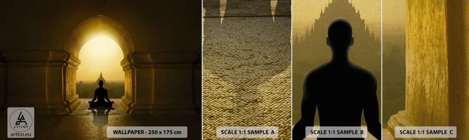 Mostră tapet Premium Canvas - Armonie completă - Meditaţie, Templu, Buddha - 100x30 cm