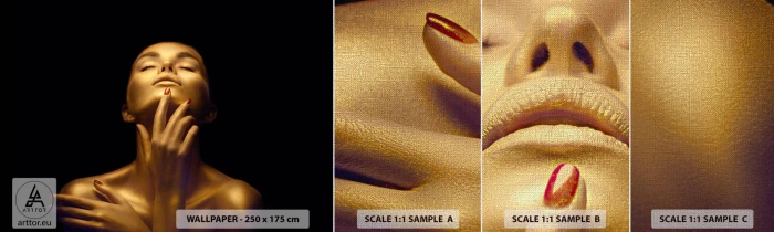 Mostră tapet Premium Canvas - Ca mătasea aurie - Femeie, Chipul de femeie, Corp - 100x30 cm