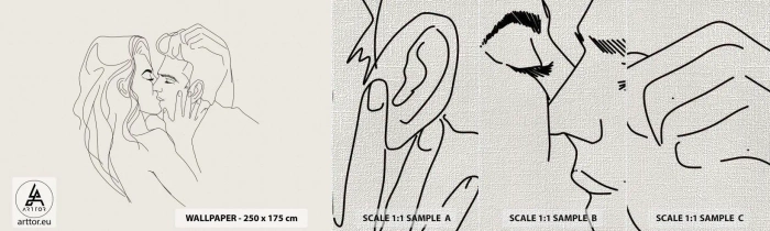 • Grafică, Cuplu îndrăgostit, Sărut, Alb-negru, oameni, Pentru hol, Pentru sufragerie, Pentru dormitor, Alb, alb și negru