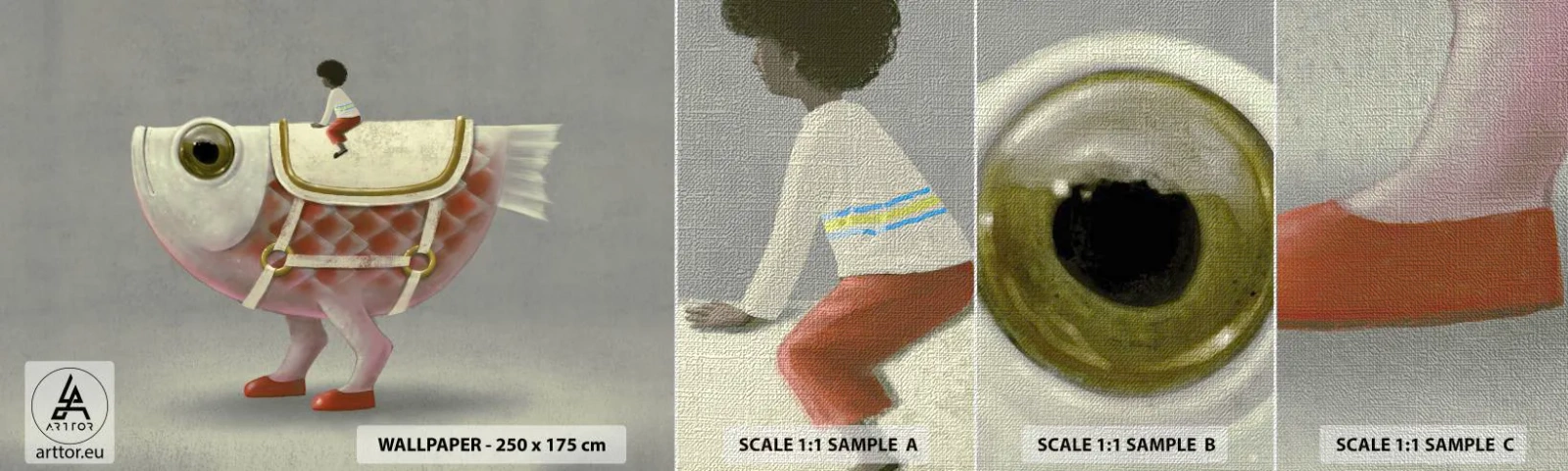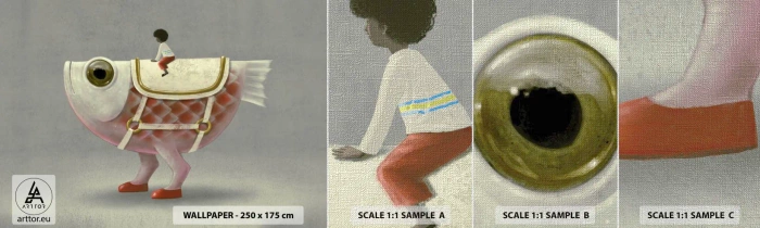 Mostră tapet Premium Canvas - Călărețul Pescărel - Abstracția, Peşte, Pentru copii - 100x30 cm