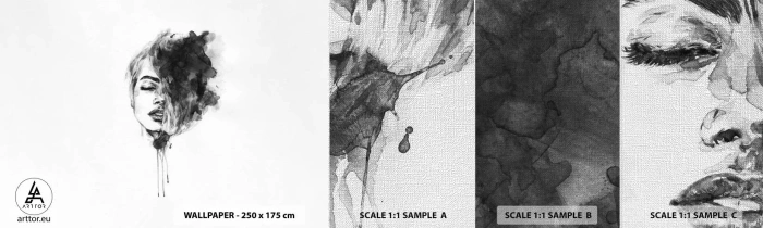 Mostră tapet Premium Canvas - La ce visează frumoasa - Portretul unei femei, Chipul de femeie, Abstracția - 100x30 cm