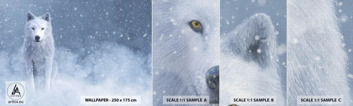 Mostră tapet Premium Canvas - În stil de iarnă - lup Alb, Animale, Iarnă - 100x30 cm