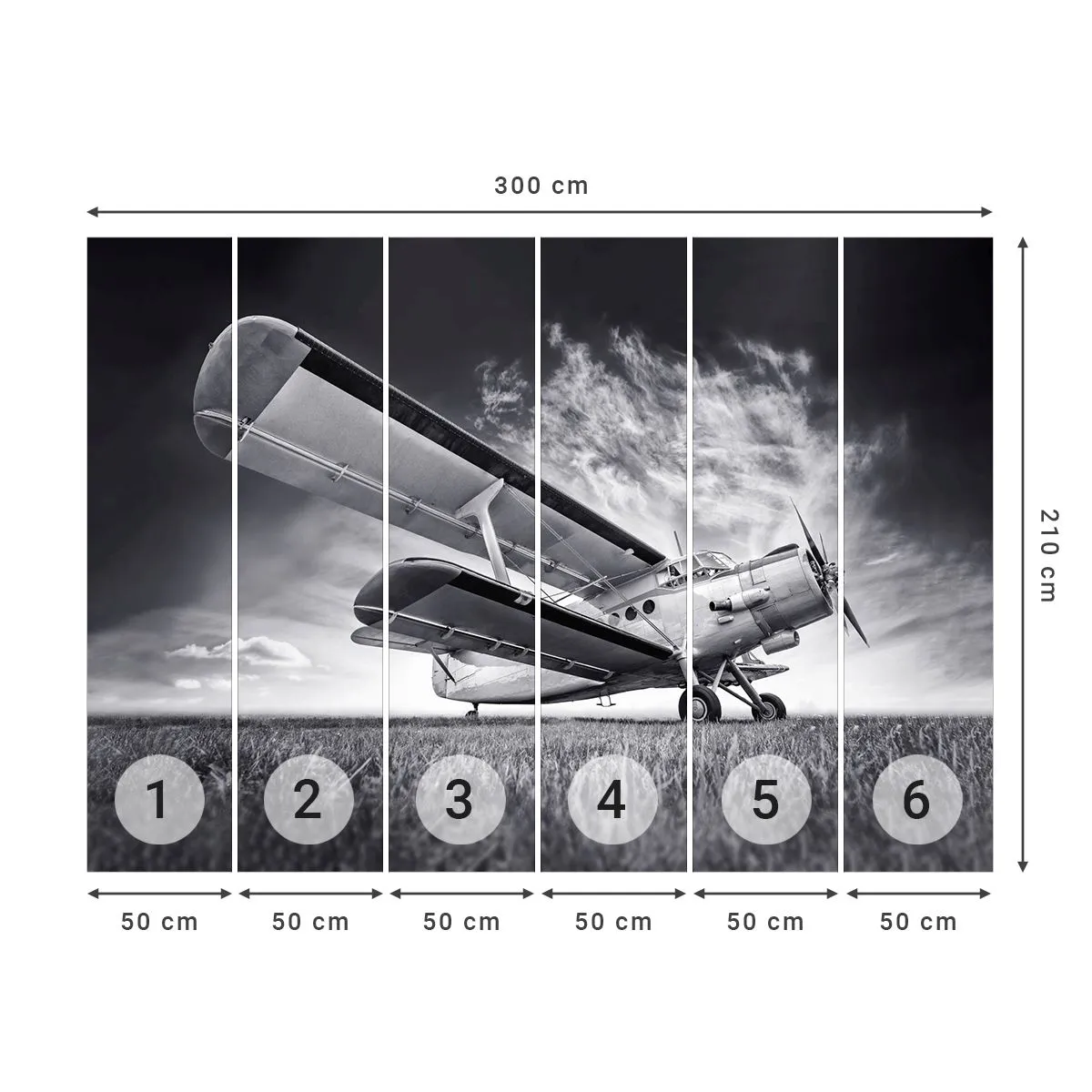 Tapet Premium Sand - Rătăcitorul înaripat - Avion, Avioane, alb-negru - 300x210 cm