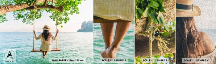 Mostră tapet Premium Canvas - Viața este frumoasă - Relaxare, Leagăn, Femeie - 100x30 cm