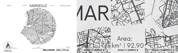 Mostră tapet Premium Canvas - Anatomia Marsiliei - Hartă, Marsilia, Franţa - 100x30 cm