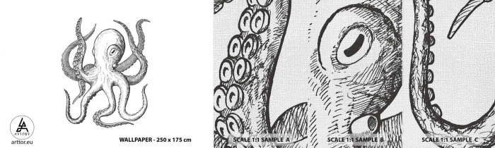 Mostră tapet Premium Canvas - Dansând cu valurile - Caracatiță, Desen, Litoral - 100x30 cm