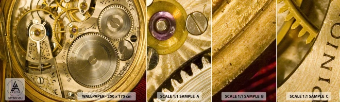 Mostră tapet autocolant Deluxe Sticker - Fii în pas cu vremurile - Ceas, Mecanismul ceasului, Epocă - 100x30 cm