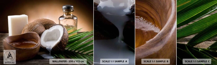 Mostră tapet autocolant Deluxe Sticker - Sănătate din insulele tropicale - Nucă de cocos, spa, Ulei de cocos - 100x30 cm